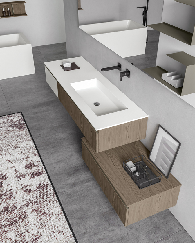 Тумба подвесная для раковины BMT Galaxy 500 мм х 1050 мм х 243 мм, с 1 выдвижным ящиком, цвет Nespola/Titanio