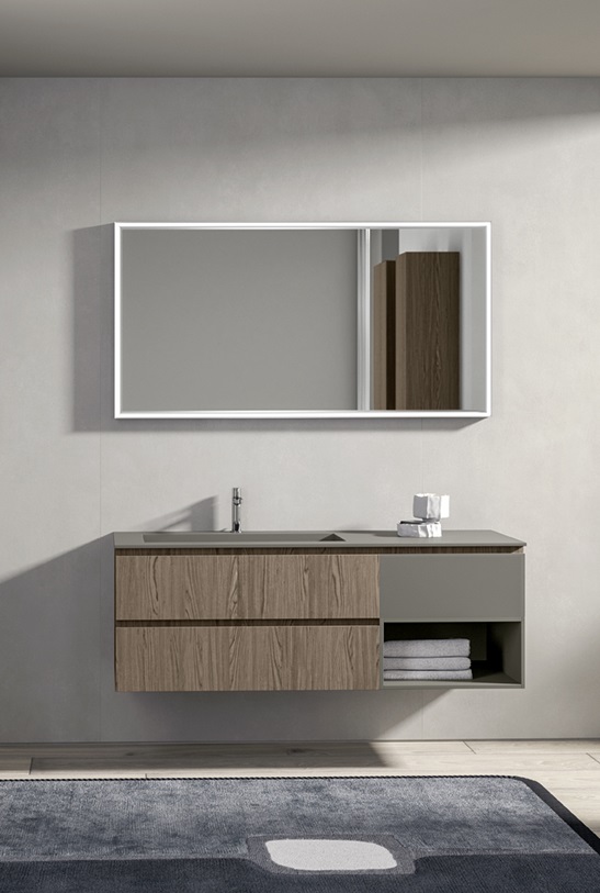 Комплект мебели BMT GALAXY GA-03 1410х 2000х504 мм c 2 тумбами, раковиной, полками и зеркалом, цвет Nespola/Grigio Londra Opaco: