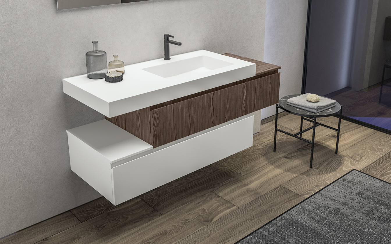 Комплект мебели BMT GALAXY GA-11 1310х1850х504 мммм c 2 тумбами, раковиной и зеркалом, цвет Chestnut/Bianco Opaco/B-Tech Bianco Opaco: