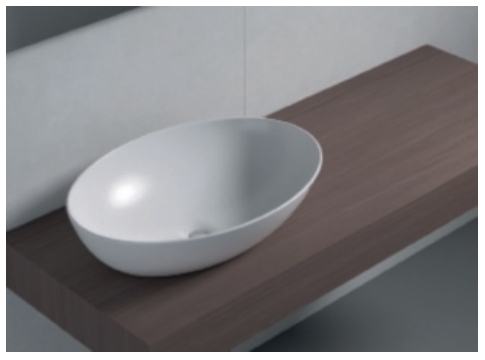 Раковина овальная накладная BMT GALAXY 420 мм х 600 мм х 145 мм, с отверстием под смеситель, без перелива, GelCrill Bianco Opaco