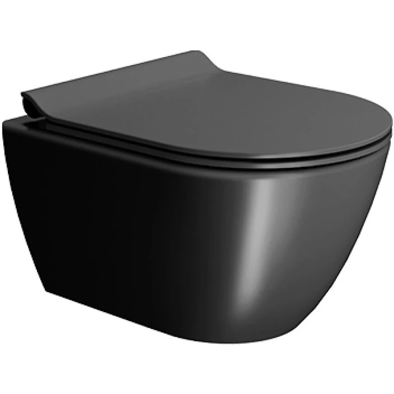 Биде подвесное GSI PURA 8864FR5126, размер 500 мм х 360 мм, с одним отверстием под смеситель, с переливом, с креплением, цвет Чёрный матовый Ardesia: