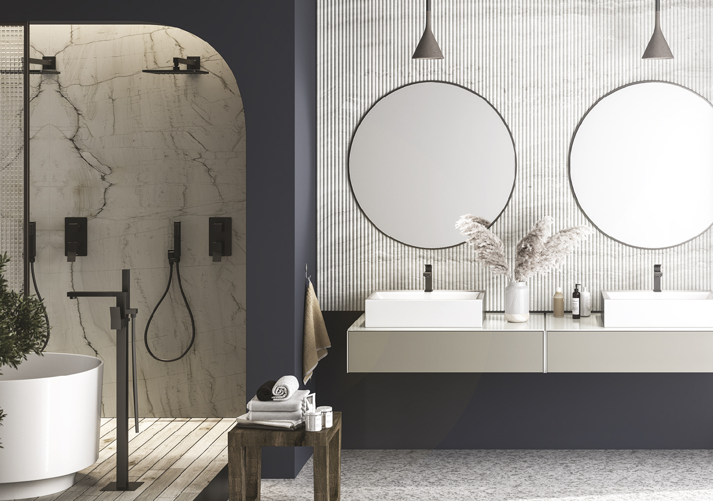 Она включает смесители для раковины, смесители для раковины настенные, смесители для биде, смесители для ванны, напольные смесители для ванны, наружные части для встройки с характерными формами ручек.