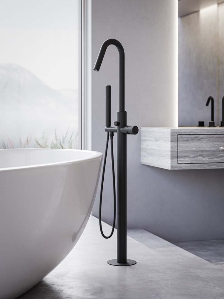 Коллекцию Ply дополнил напольный смеситель для ванны однорычажный 1144 мм, со скрытой частью, ручным душем-палочкой и шлангом 1250 мм, хром (030) – артикул Z00942.030.