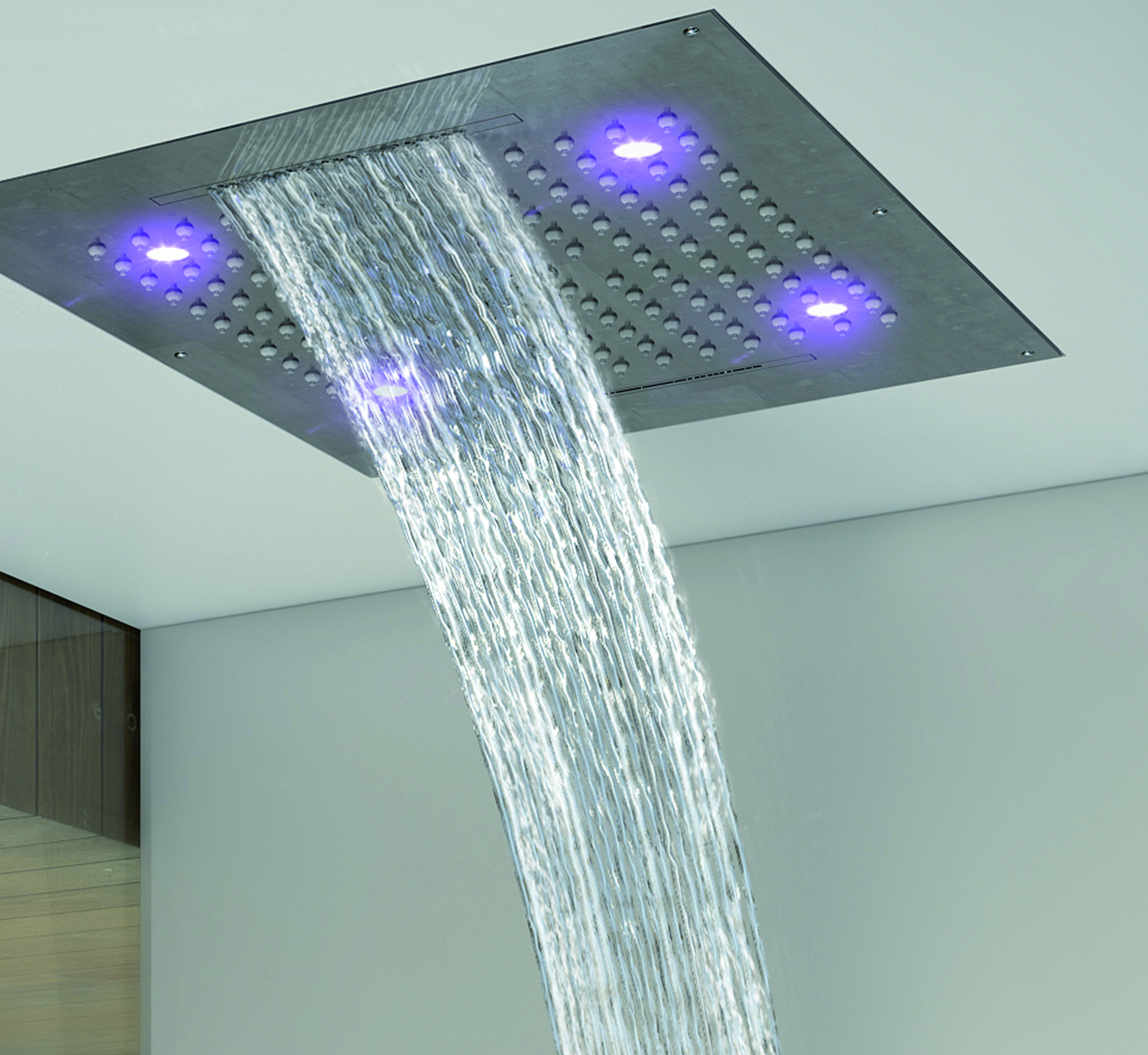 Потолочные души Dream превращают ванную комнату в зону СПА, создавая непередаваемую атмосферу уюта, комфорта и релакса. Это душевые лейки для установки в подвесной потолок, изготовленные из стали inox c самоочищающимися форсунками, с гибкой подводкой для подключения к водоснабжению. Все лейки Dream оснащены встроенным в центр распределяющей поверхности разгрузочным устройством, которое позволяет минимизировать остатки воды внутри лейки. Это устройство, запатентованное Bossini, создает струю воды, смешивая воздух и воду. Достаточно 16 литров воды в минуту для оптимального функционирования леек Dream. Души с хромотерапией оснащены трансформатором низкого напряжения и блоком управления подсветкой.